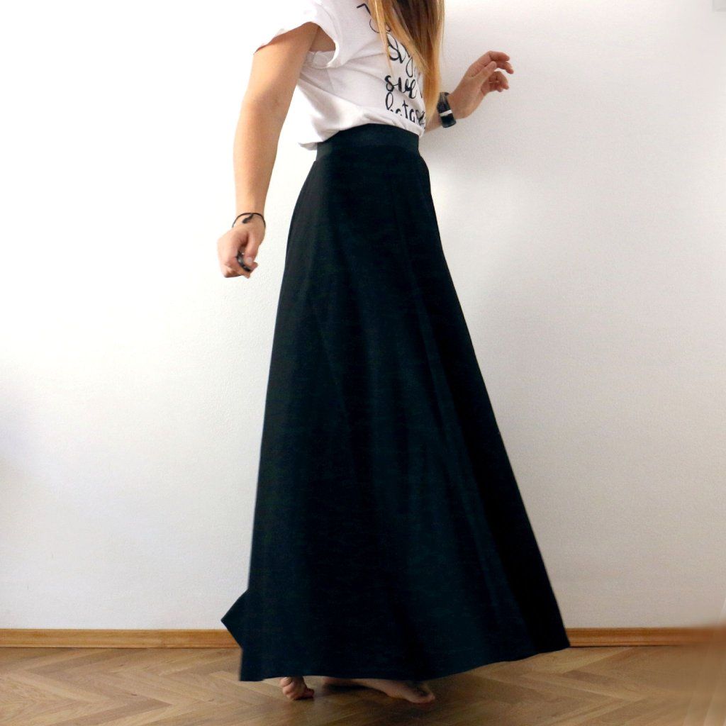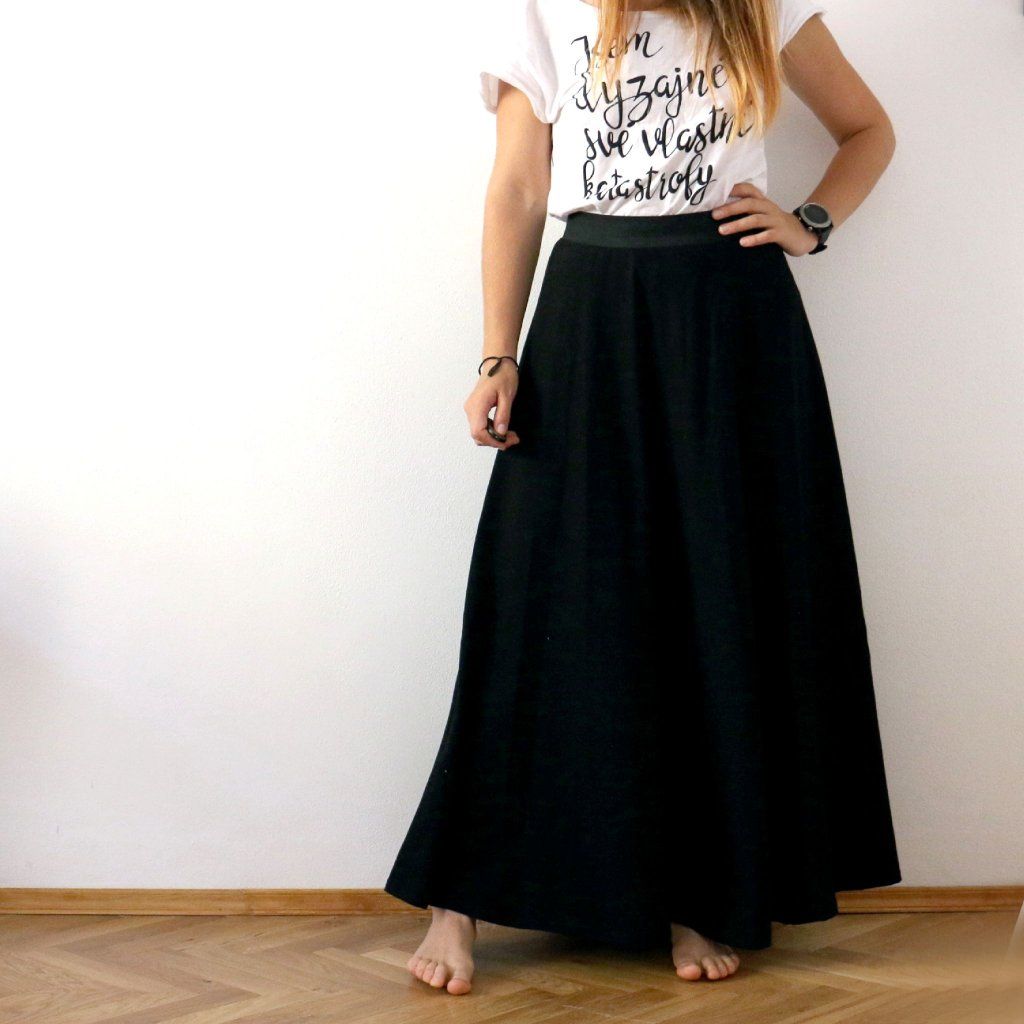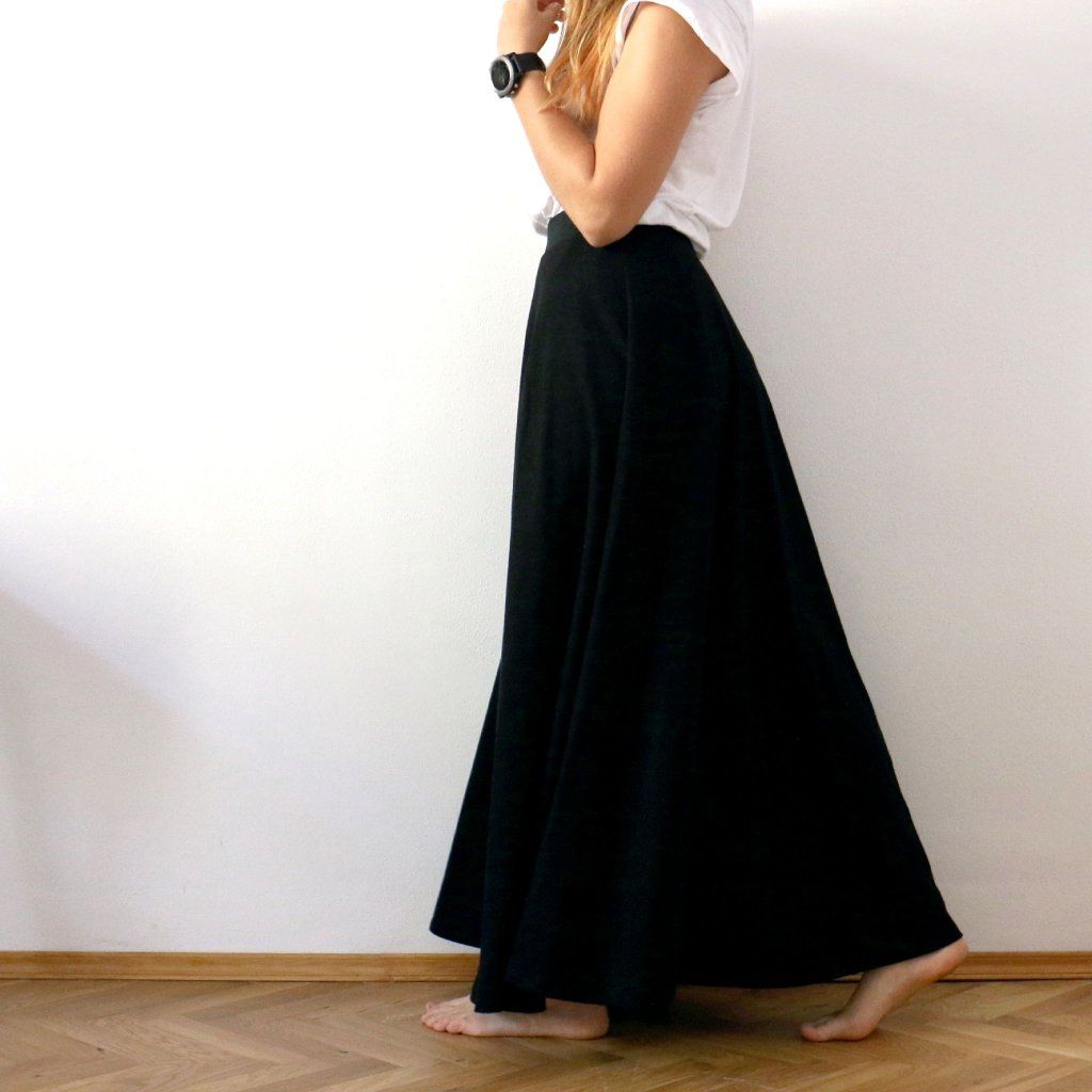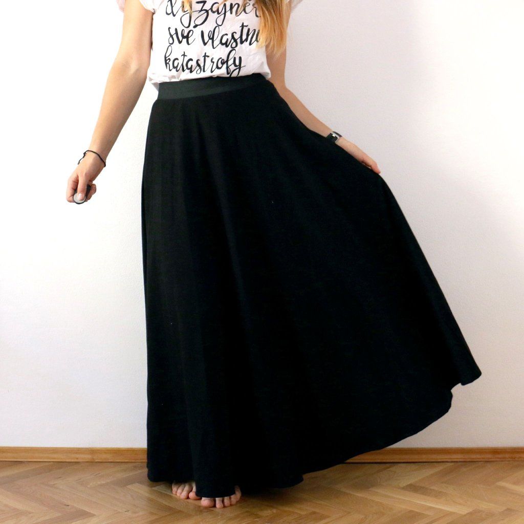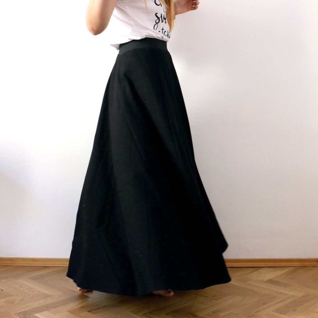 Dlouhá půlkolová sukně, jednobarevná / černá