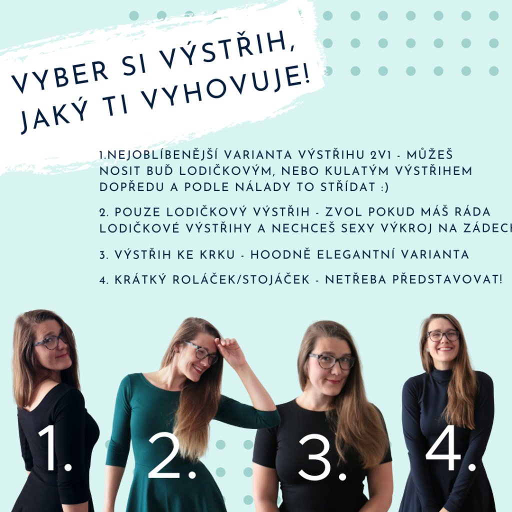 Chceš u šatů dlouhý rukáv, pouze lodičkový výstřih, nebo třeba roláček?