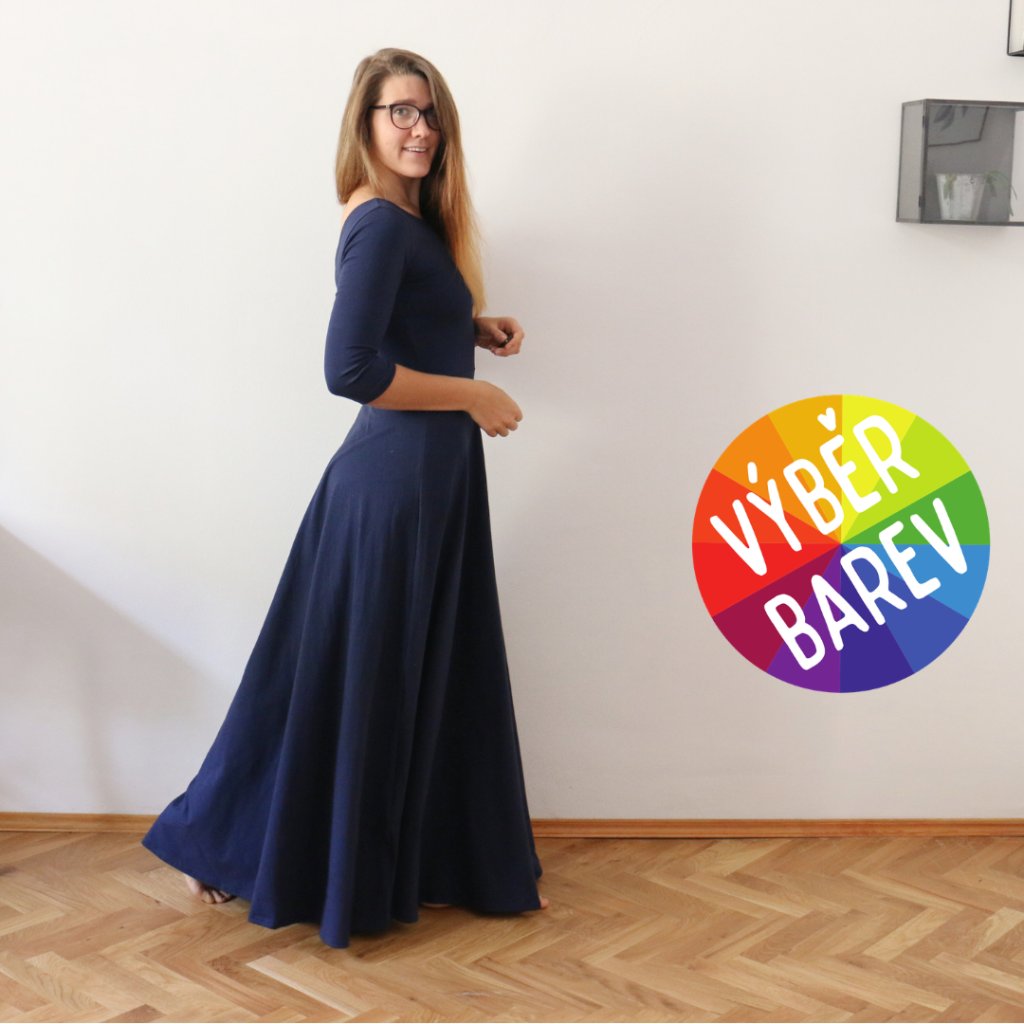 Půlkolové MAXIšaty jednobarevné / 3/4 rukávy / VÝBĚR BAREV!