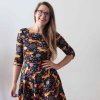 Půlkolové šaty, lišky / 3/4 rukávy